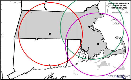 Proximity to predatory gambling increases addiction within a 50 mile radius by double. The map below illustrates those areas of the state located within 50 miles of proposed casino locations in East Boston, Palmer, and Southeastern Mass.